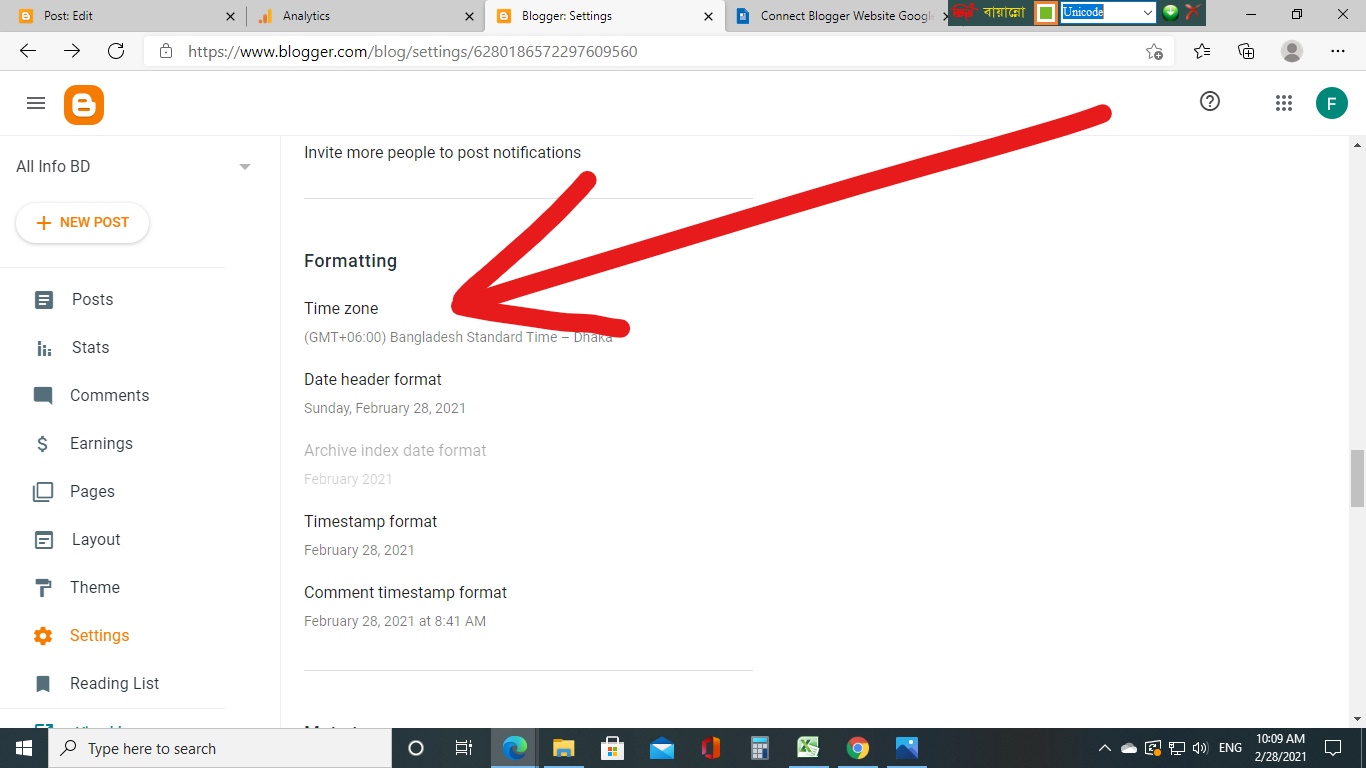 প্রথমে ব্লগারে লগইন করুন তারপর settings এ ক্লিক করুন